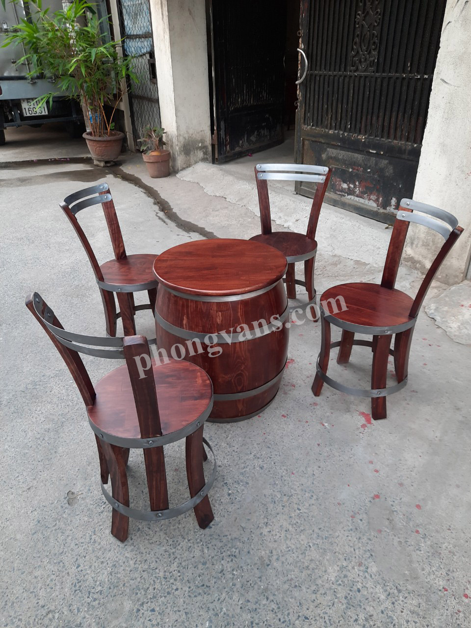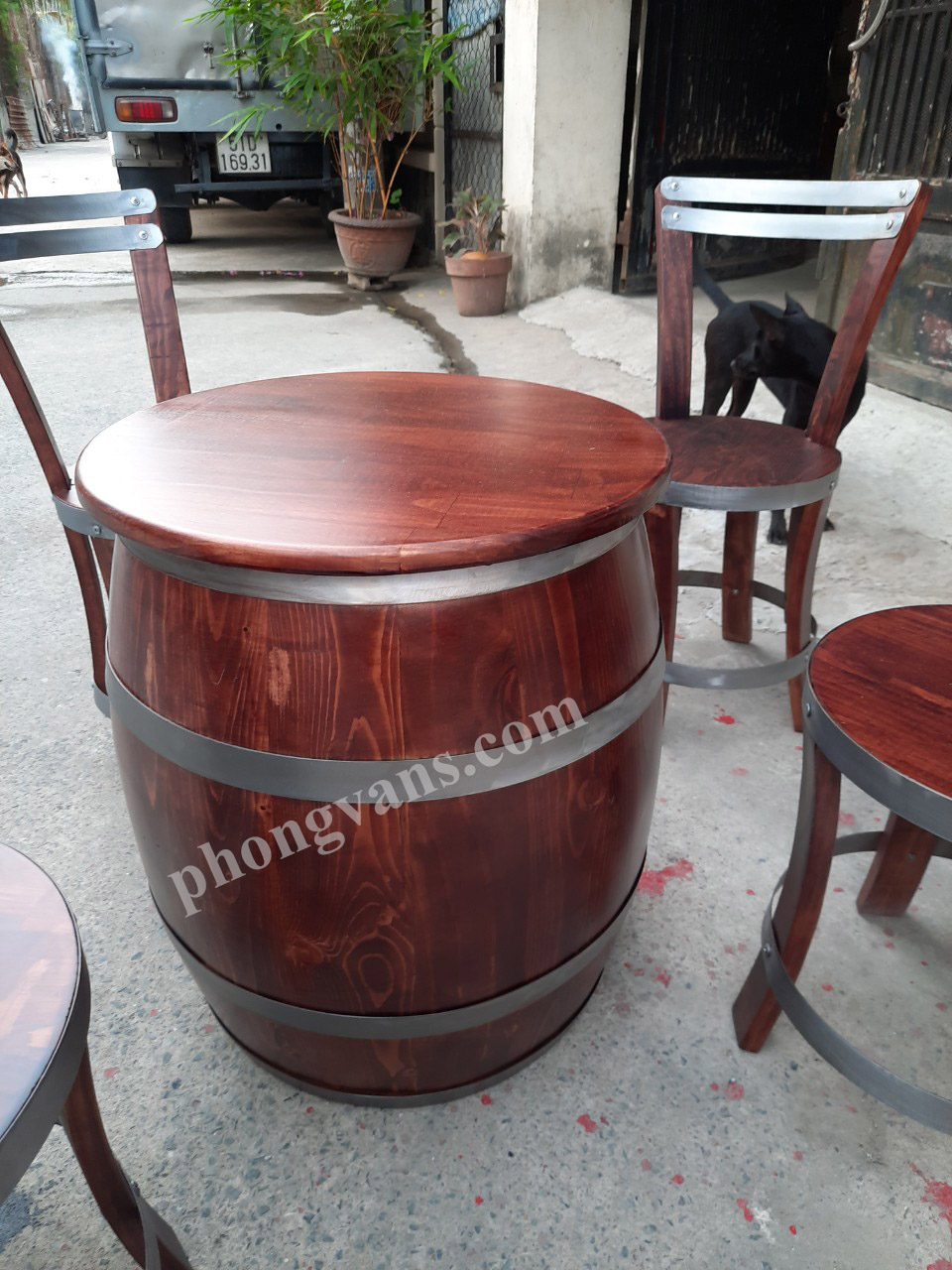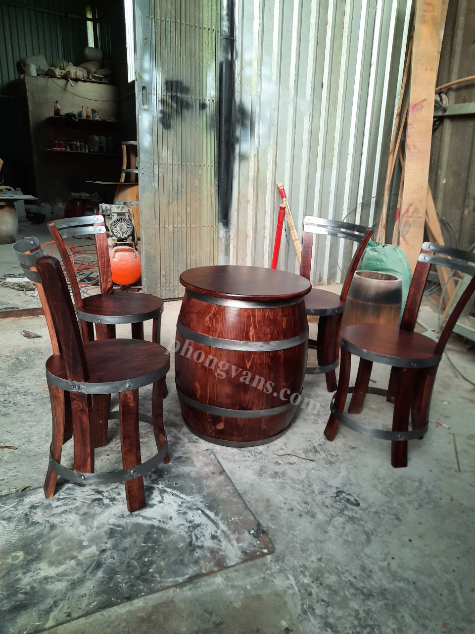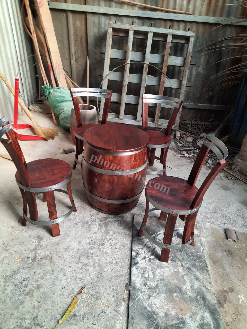 Bộ bàn ghế thùng gỗ phong cách hầm rượu cổ điển