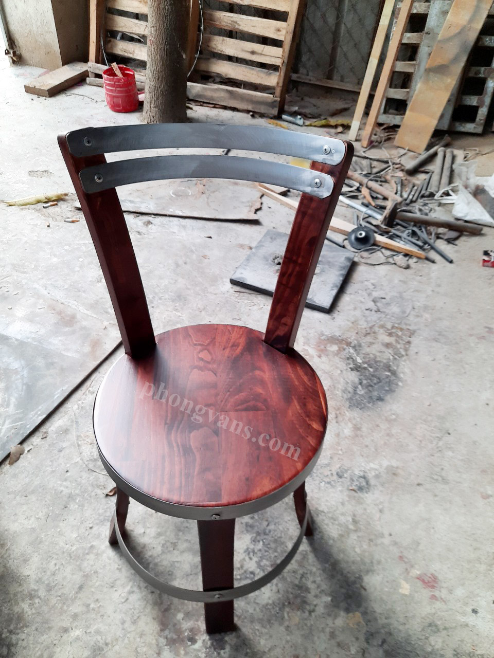 Bốn ghế được thiết kế kiểu bốn chân chắc chắn. Chân ghế hơi cong ra phía ngoài. Xung quanh được bo khung sắt tròn chắc chắn, tạo nên điểm nhấn độc đáo. Tựa ghế lưng được làm từ 2 thanh sắt bắt mắt. Kích thước ghế cao 38cm và tựa lưng cao 70cm.