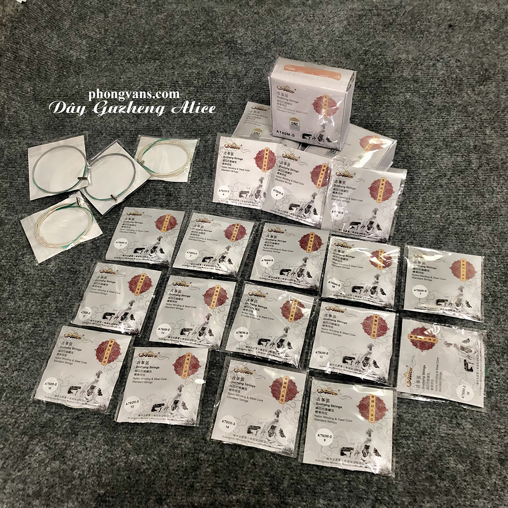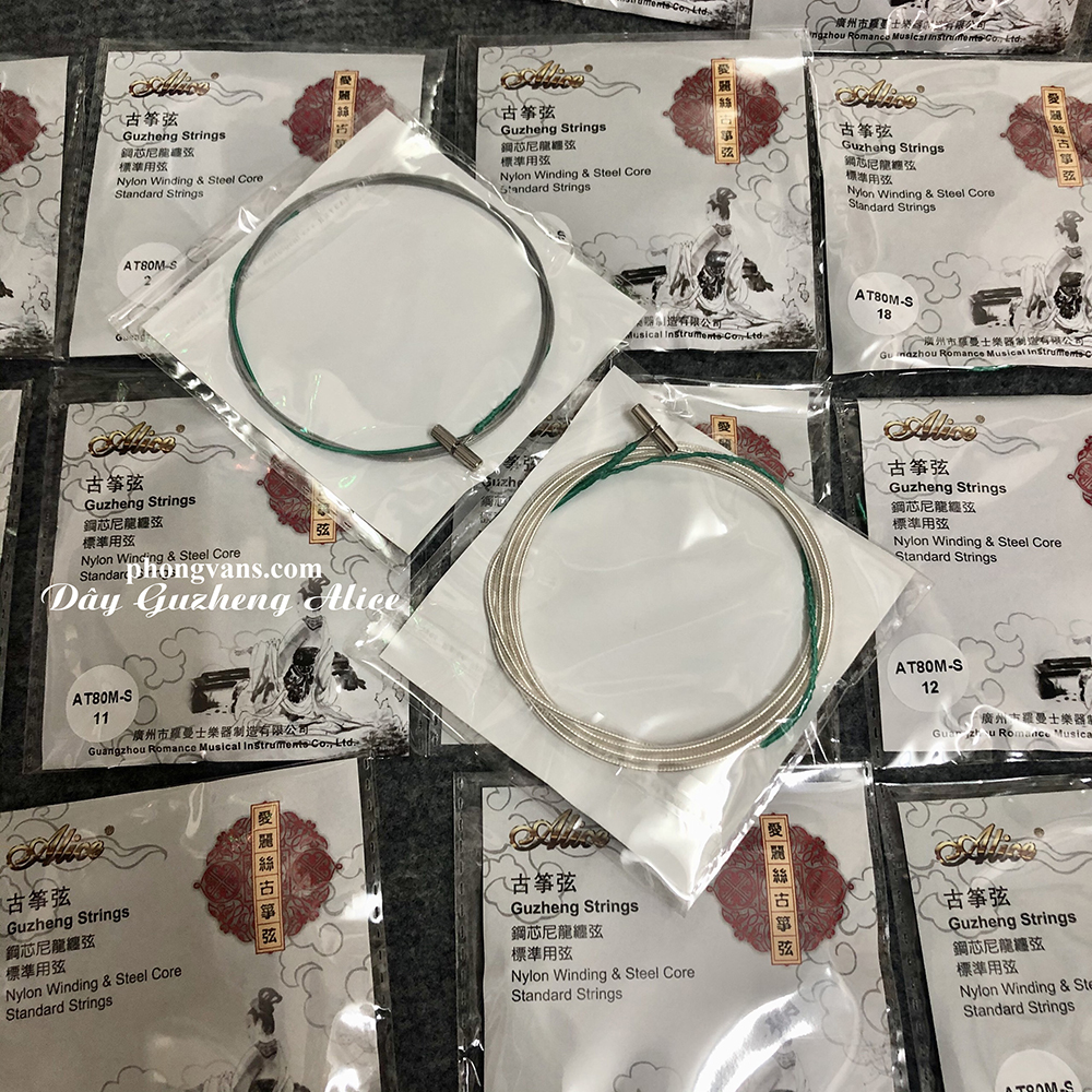 Dây đàn tranh Trung Quốc được đóng gói 21 dây một bộ. Dây đàn guzheng được cấu tạo là lõi kim loại, bọc nhựa bên ngoài. Vì vậy dây chắc chắn, bền, khi đánh hạn chế đau tay. Lớp nhựa như lớp bảo vệ dây tránh bị oxi hóa làm mất thẩm mĩ đàn. Bộ dây của thương hiệu nổi tiếng Alice.