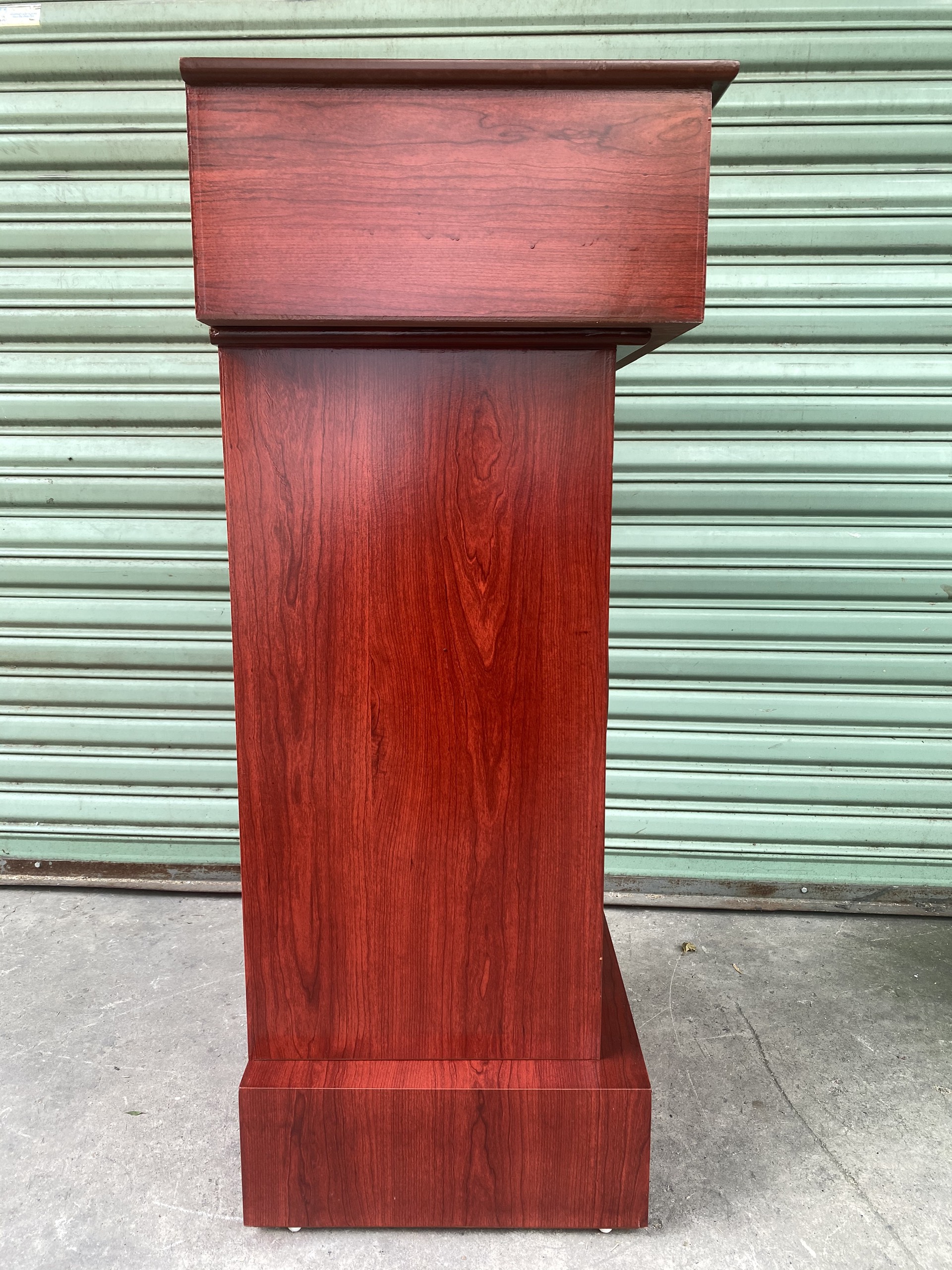 Mang dáng vẻ trang nghiêm của những nơi có không khí trang trọng như hội trường, hội nghị; Bục để tượng Bác Hồ chấm tròn bằng gỗ đem đến nơi phát biểu, nơi đặt tượng Bác đẹp và thu hút nhất. Sản phẩm được làm từ gỗ công nghiệp với kết cấu bền chắc; cách điệu và mới mẻ. Gam màu nâu đỏ càng tô điểm thêm vẻ đẹp thu hút cho sản phẩm này.