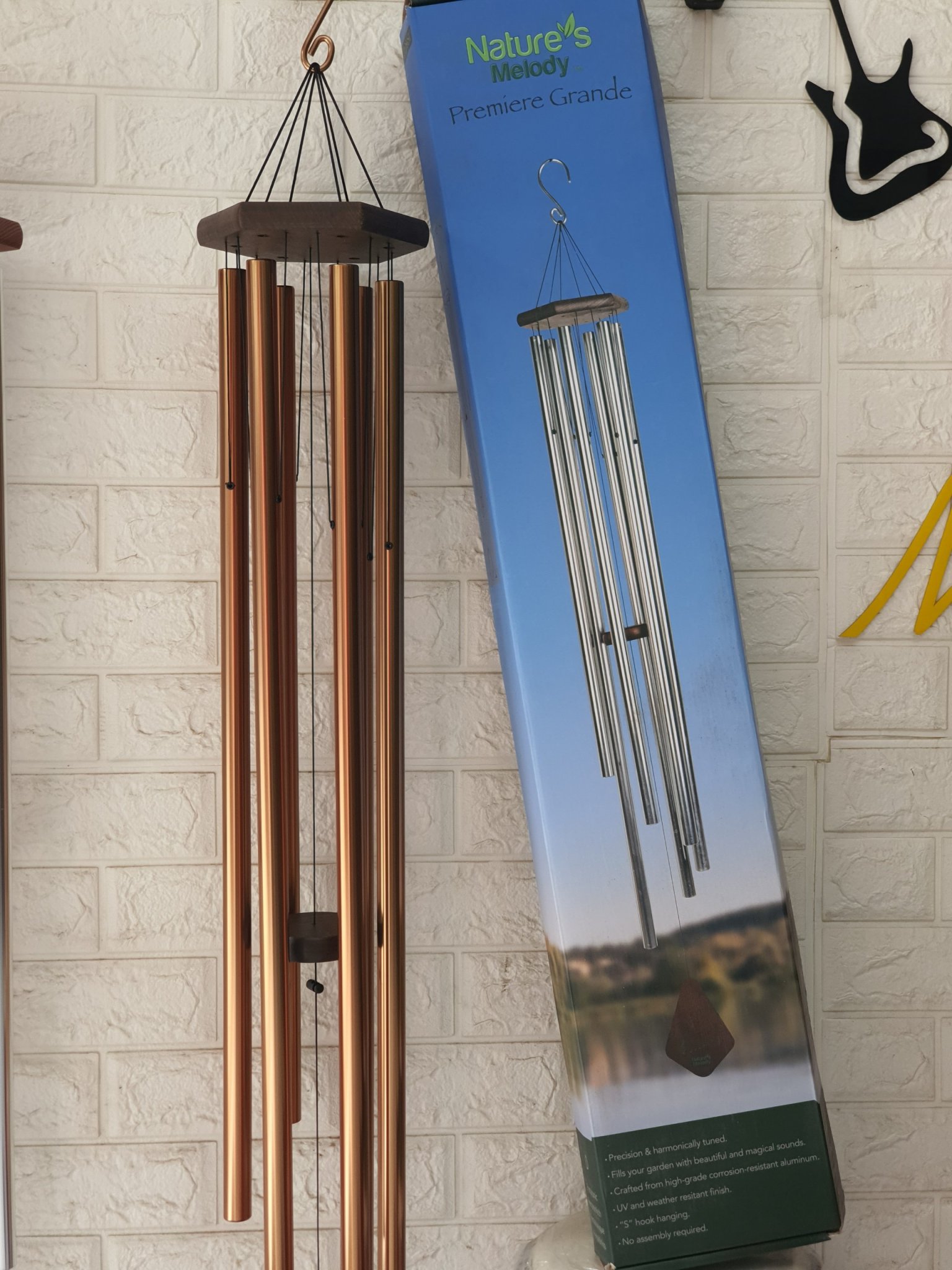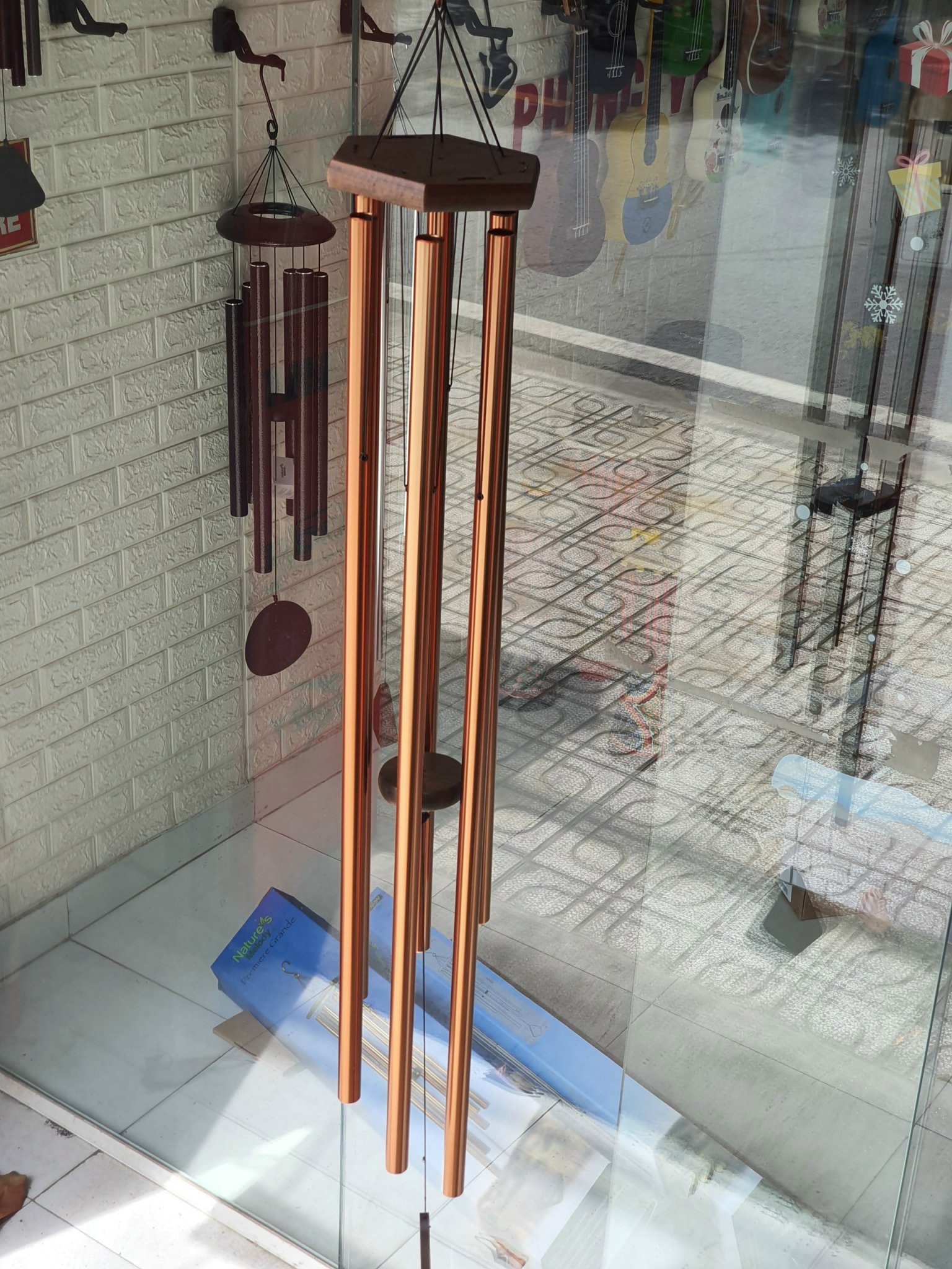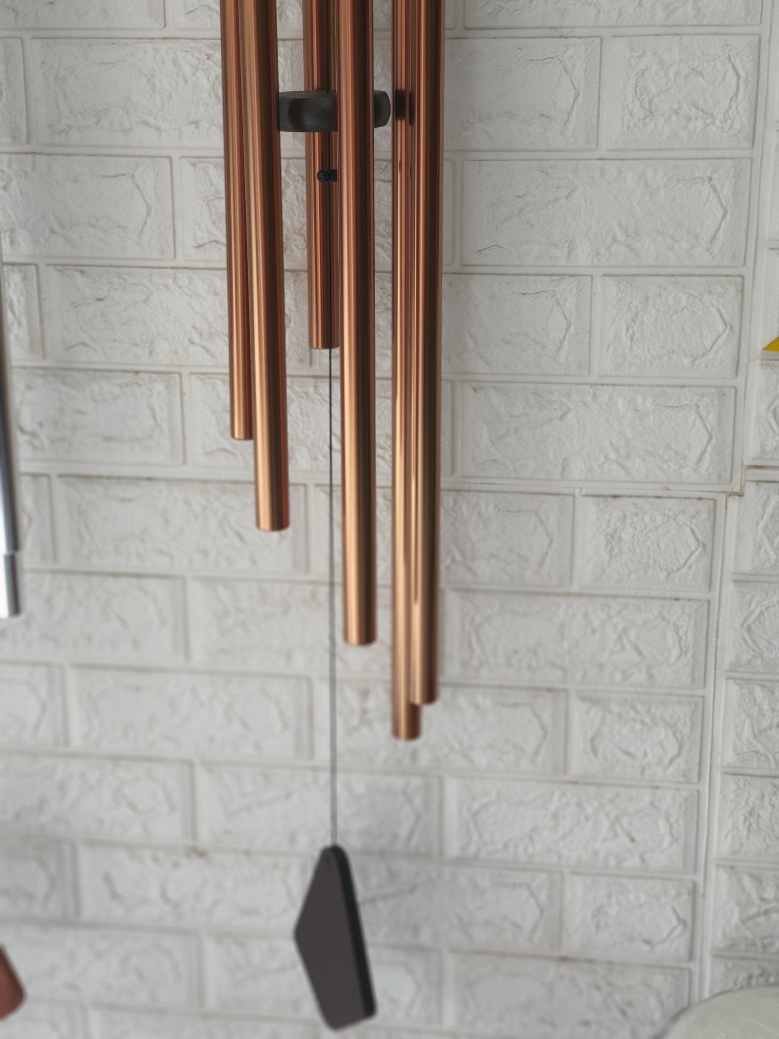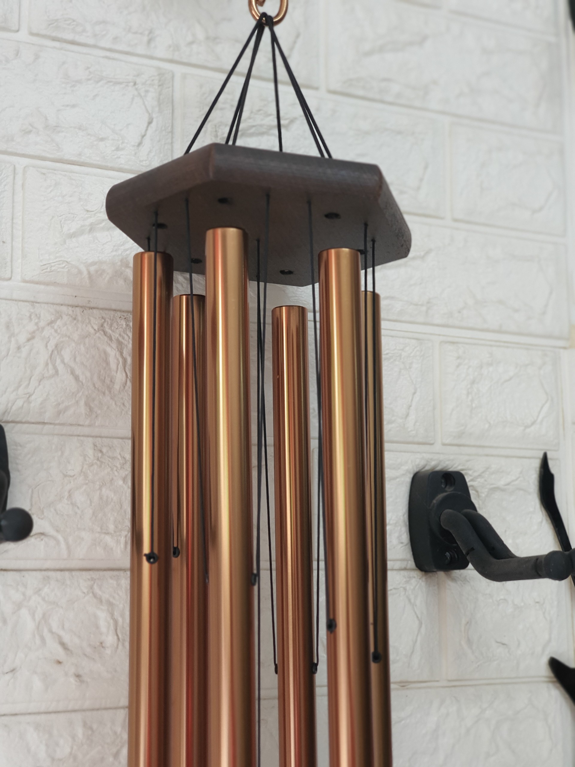 Chuông gió kim loại lớn treo sân vườn loại này có khả năng bắt gió và tạo âm tốt. Từng ống kim loại dài ngắn khác nhau cho ra những âm thanh trầm bổng riêng. Kể cả khi gió thoảng hay gió lớn, sản phẩm này vẫn bắt đúng điệu của thiên nhiên. Mà lập tức tạo nên cái âm điệu riêng làm say đắm hồn người. Một thứ âm thanh không thua kém gì âm thanh từ các nhạc cụ dân tộc.