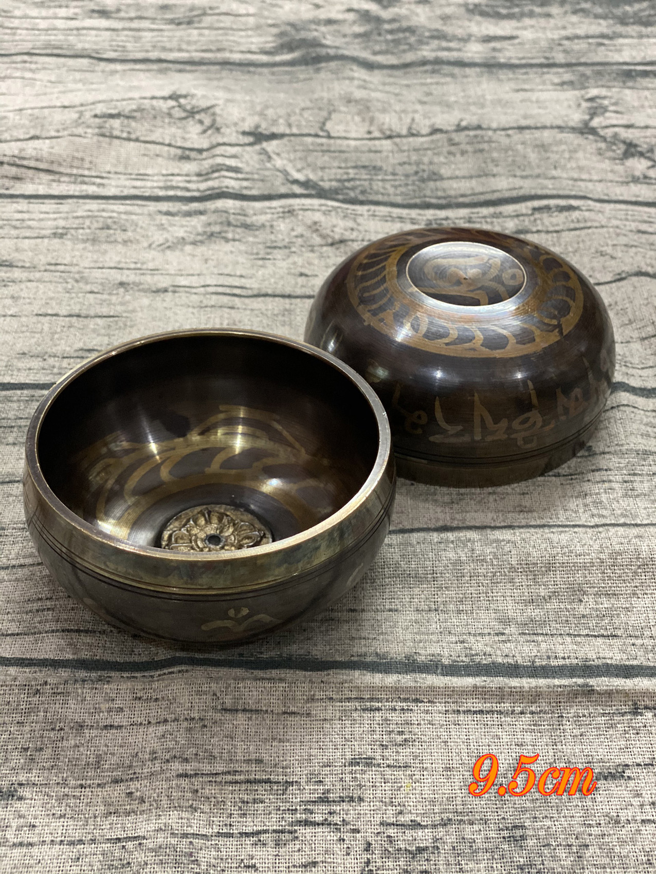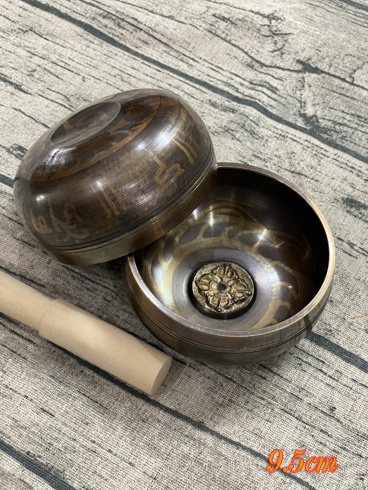 Chuông xoay Tây Tạng 9.5cm được làm từ chất liệu đồng có kết hợp thêm thiếc và một vài chất liệu khác. Chuông mang sự chân quý; âm thanh hay vã tĩnh lặng. Sở dĩ có nhiều người yêu thích và sử dụng sản phẩm bởi âm thanh của nó có đủ khả năng mở 7 luân xa trên cơ thể. Chuông có khả năng xoay; kết hợp cùng nước hoặc cát tạo nên những âm thanh khác biệt. Vì vậy khi sử dụng, khách hàng có thể thêm các vật để kết hợp với chuông tạo ra những âm thanh thú vị nhất.