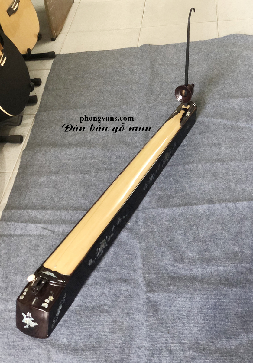 Đàn bầu điện thẳng gỗ mun đen khảm hoa văn