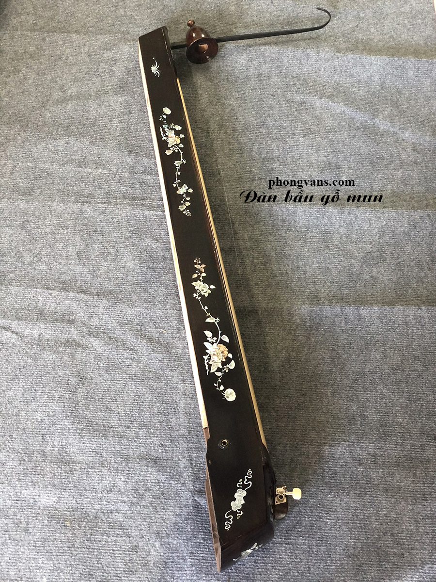 Đàn bầu điện thẳng gỗ mun đen khảm hoa văn