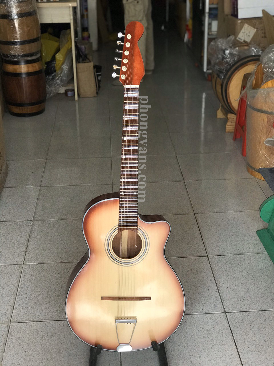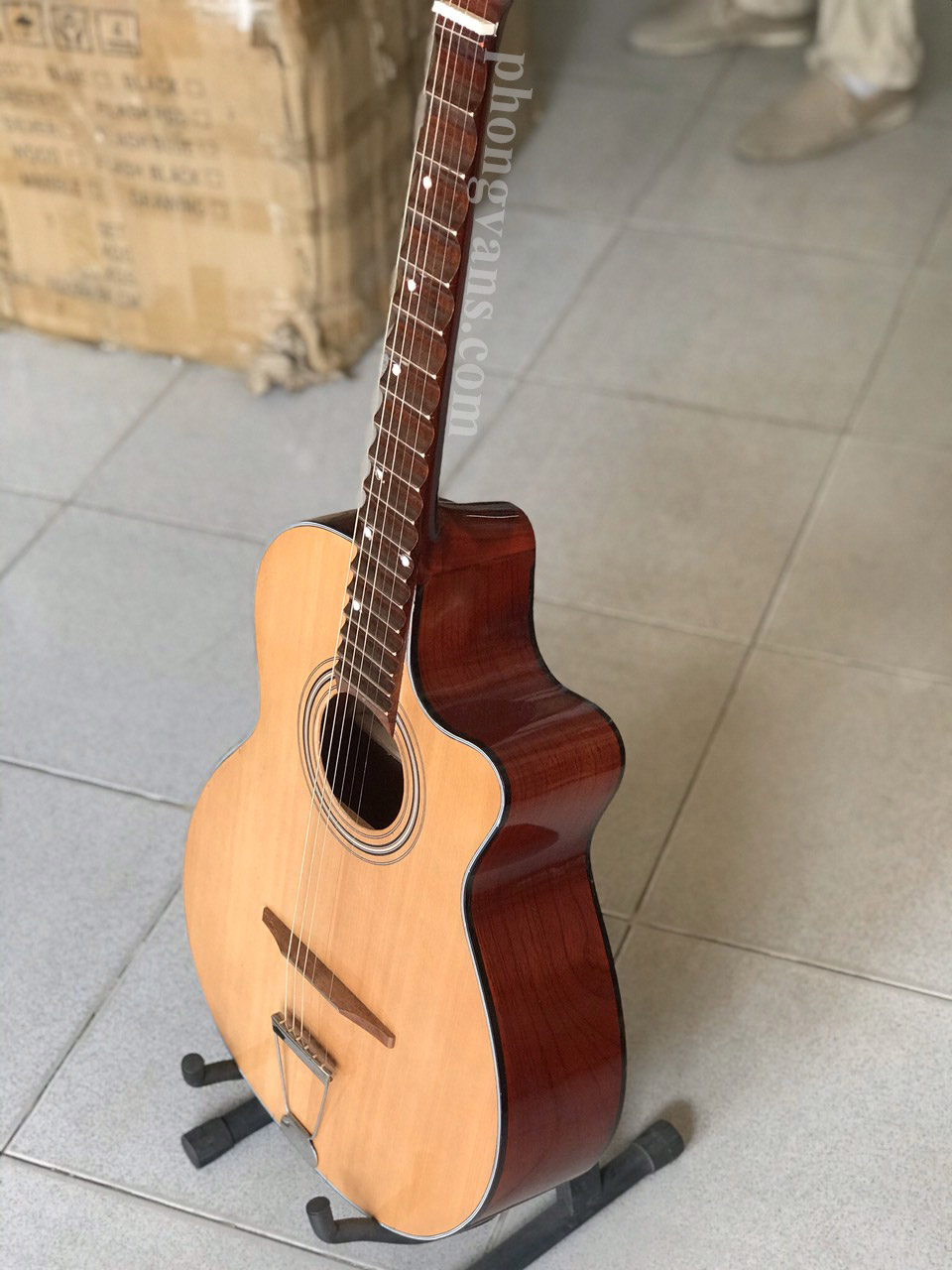 Đàn guitar thùng gỗ lõm chính là sản phẩm được các nghệ sĩ cải lương Việt Nam cải biến ra. Sản phẩm với âm sắc đầy tình cảm truyền tải được nét đặc trưng của ca vọng cổ. Một sản phẩm sử dụng các chất liệu tốt, mức giá lại phải chăng.