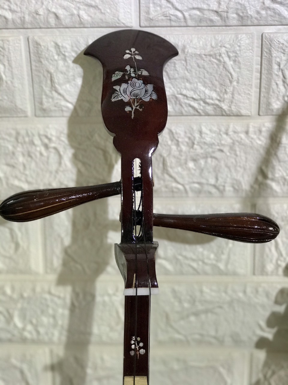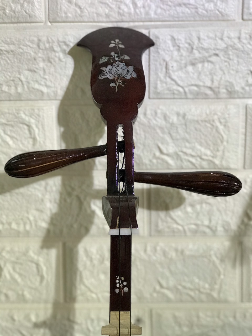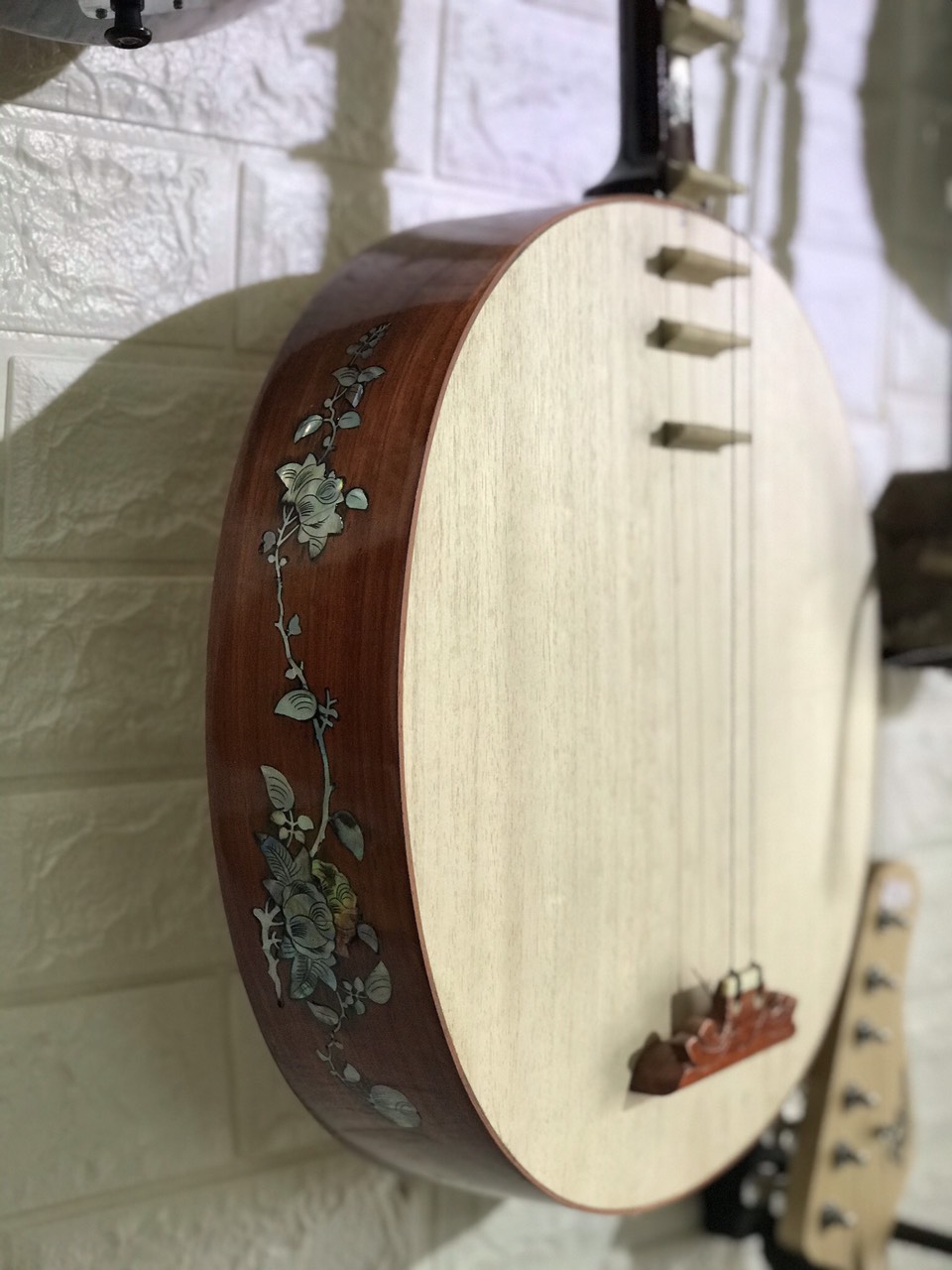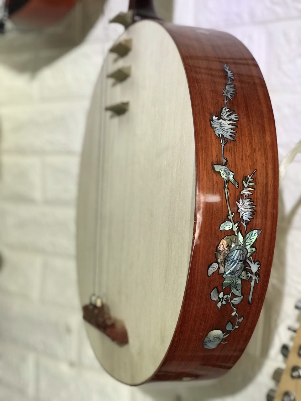 Đặc biệt trên đàn nguyệt khảm hoa vô cùng đẹp mắt. Đây là điểm nhấn góp phần tạo nên sự tao nhã và phong thái cho người dùng đàn