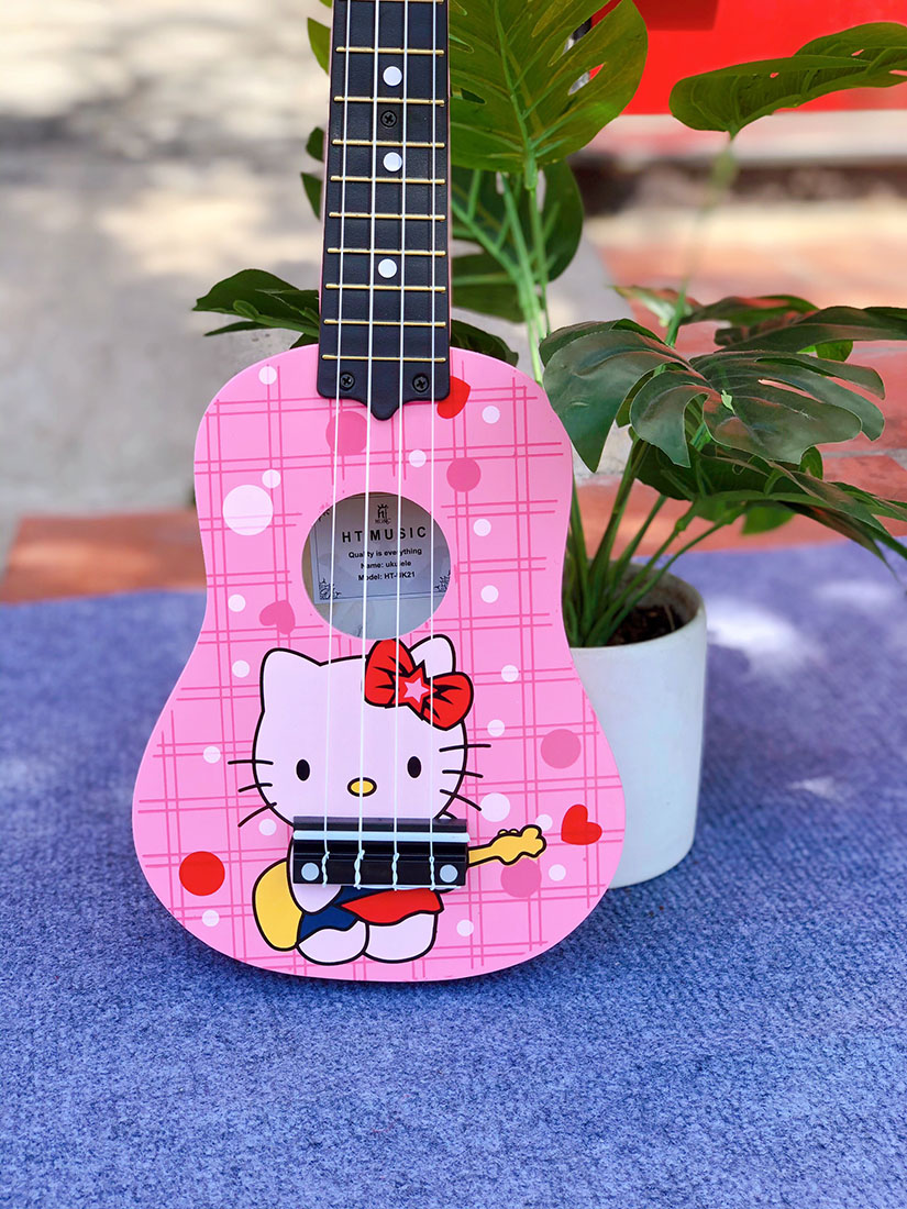 Đàn Ukulele màu hồng Kitty hay còn gọi là đàn Uke có xuất xứ từ thiên đường nhiệt đới Hawaii. Đây là một chiếc đàn guitar loại nhỏ và chỉ có 4 dây. Giai điệu và âm lượng của đàn Uke thay đổi theo kích cỡ và cấu tạo của từng loại. Đàn Ukulele gồm có 4 loại: