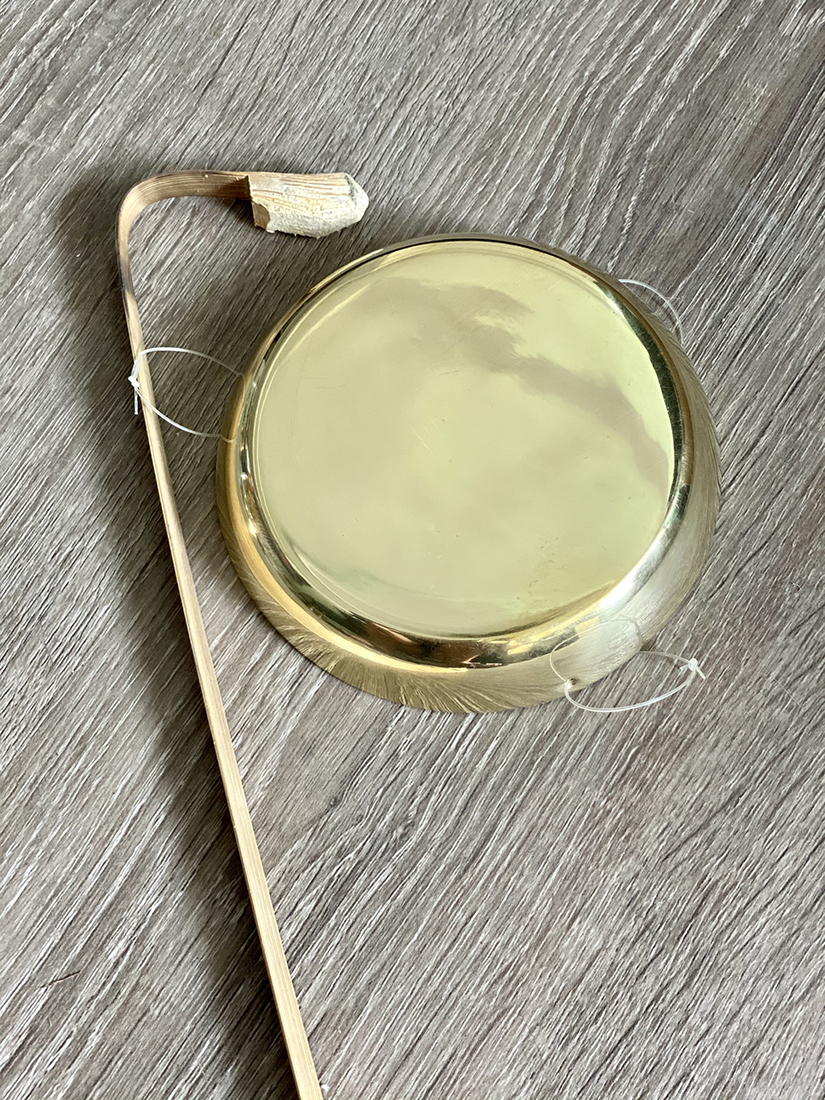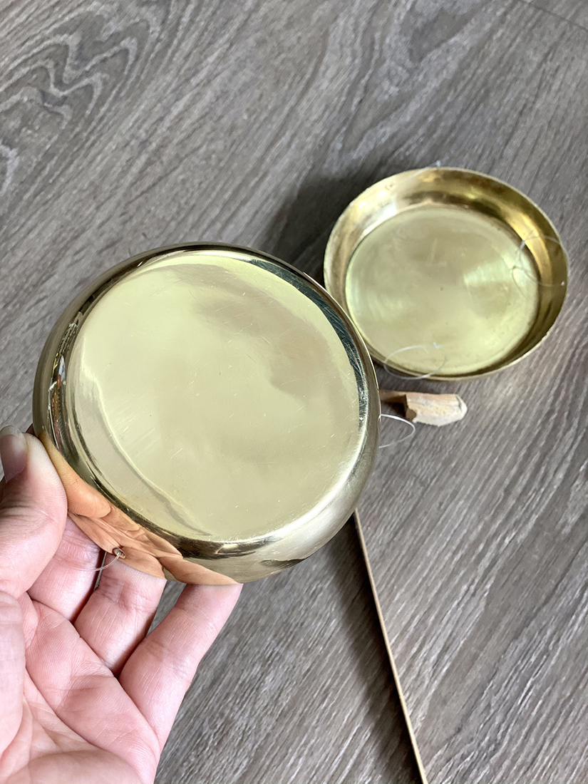 Bộ sản phẩm gồm: 1 đẩu đồng, 1 gậy đánh bằng tre