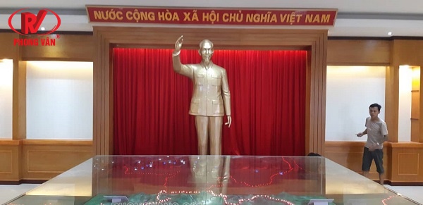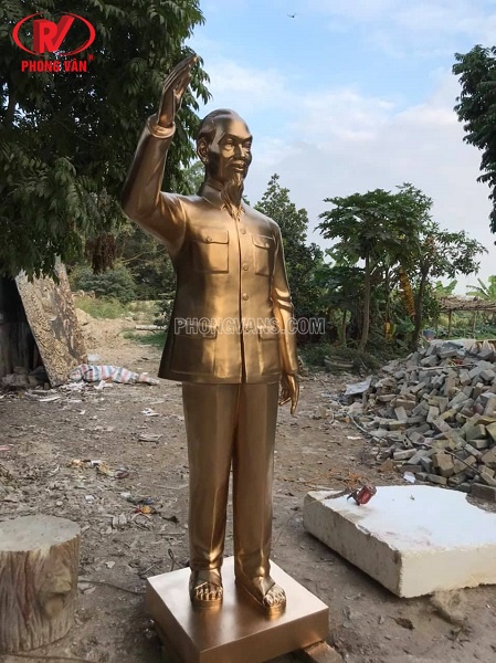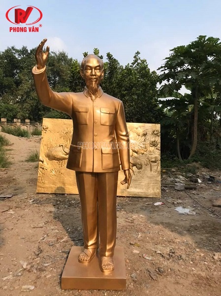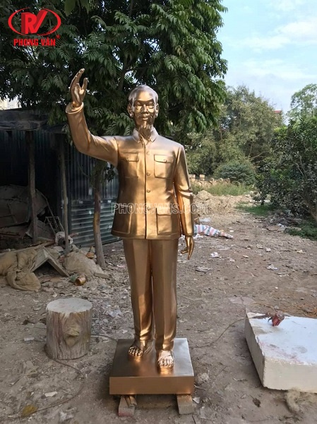 Chất liệu nhựa composite mang nhiều ưu điểm khác nhau, nhất là trong các sản phẩm tượng. Đối với các bức tượng Bác Hồ được làm từ nhựa composite, tượng sẽ có độ bền cao, tuổi thọ lâu dài; đặc biệt là sở hữu các chi tiết và đường nét giống thật một cách đáng kinh ngạc. Phong Vân hiện đang đúc các bức tượng Bác đứng vẫy tay chào màu vàng đồng. Sản phẩm có chiều cao từ 2.05m đến 2.15m. Tùy thuộc vào nhu cầu của khách hàng mà chúng tôi sẽ đúc tượng với kích thước theo yêu cầu.