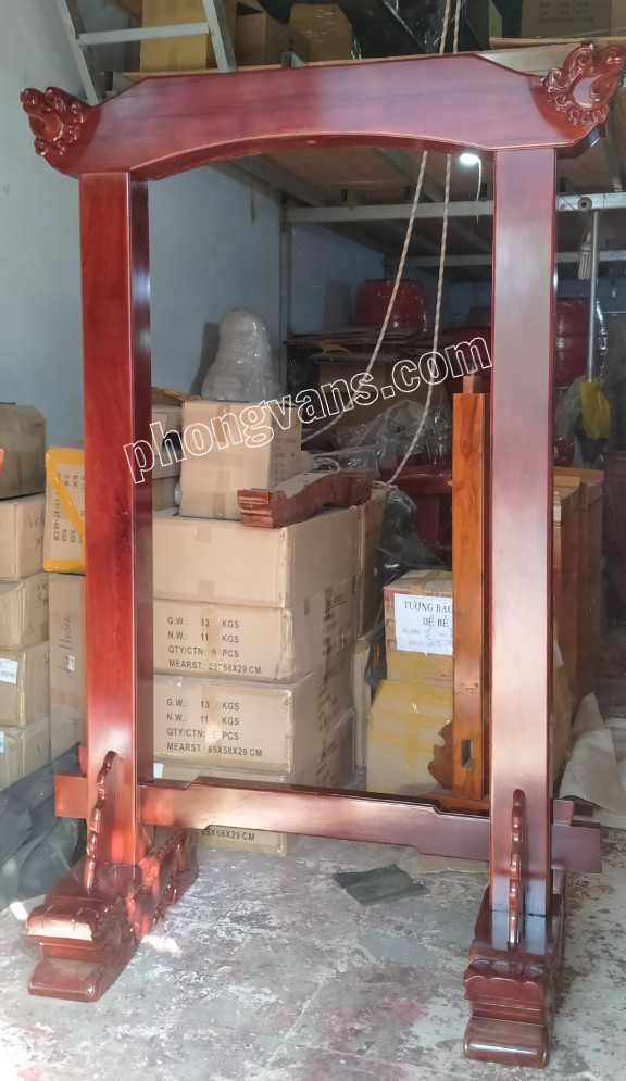 Phong Vân có cung cấp các loại giá kệ treo chuông phù hợp với trọng lượng của chuông. Giá kệ treo chuông đồng 300 kg gỗ căm se là thiết kế mới của chúng tôi; đang được nhiều khách hàng quan tâm. Gía kệ treo chuông đồng 300kg