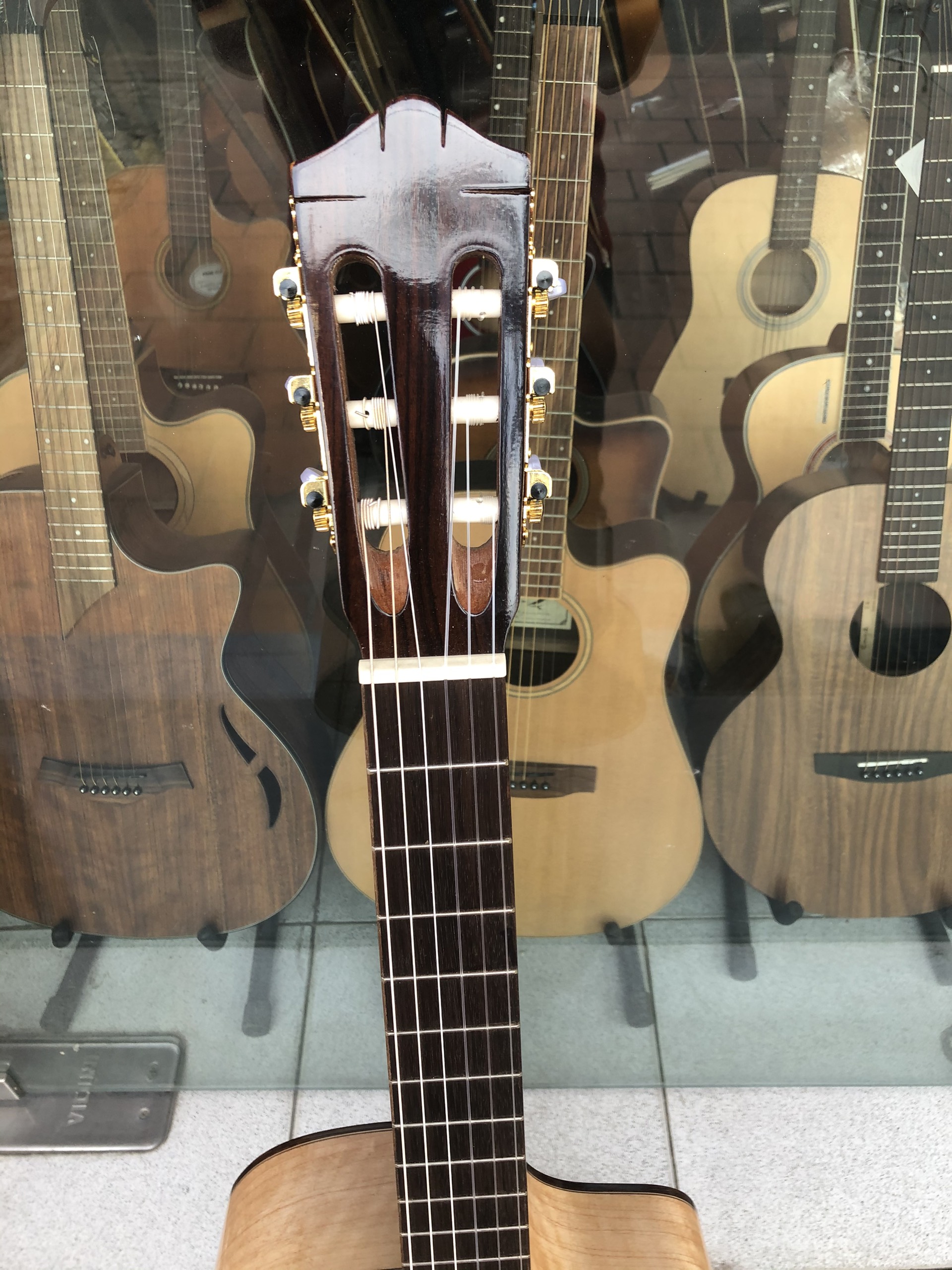 Guitar classic dáng khuyết gỗ còng cườm