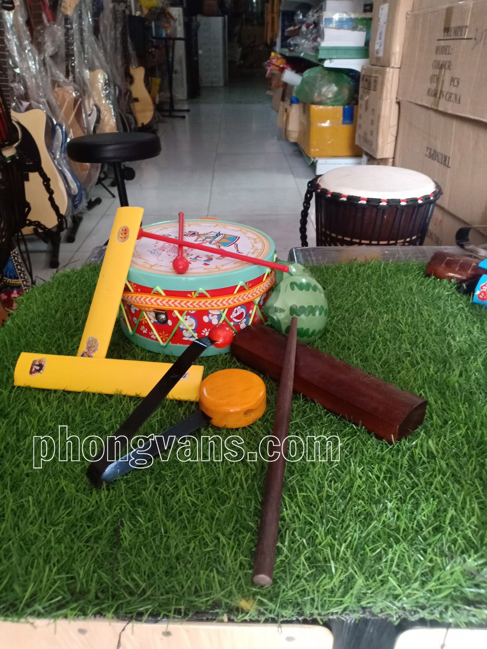 Các nhạc cụ dành cho trẻ em bao gồm các món đồ quen thuộc như: trống gõ, song loan, phách nhạc tre gỗ, phách dừa, mõ cầm tay, mõ gỗ…