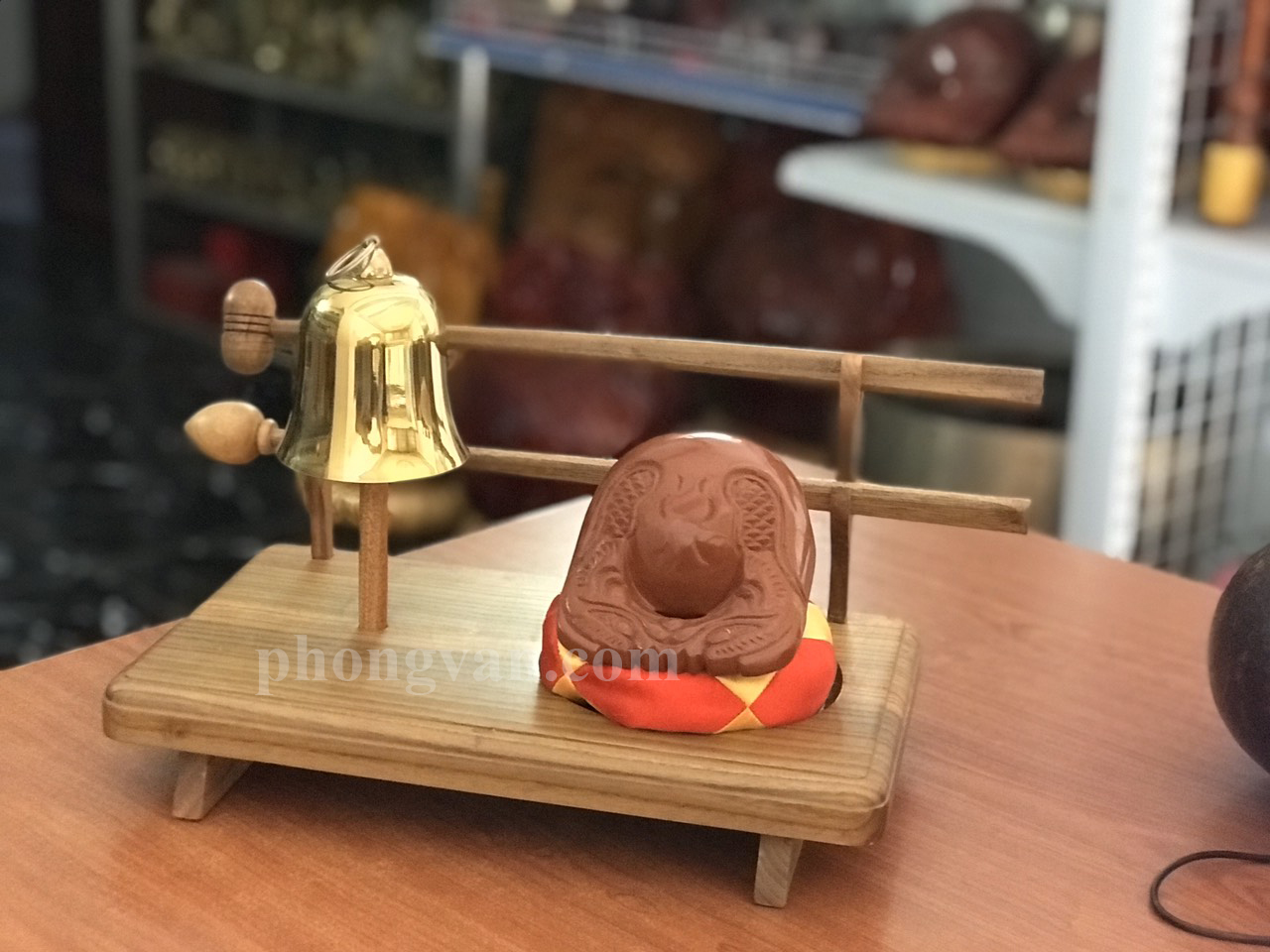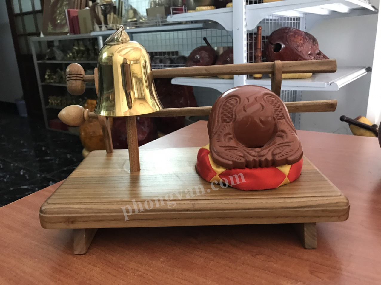 Bộ pháp khí địa chung được kết hợp từ một chuông đồng màu đen, một mõ màu tự nhiên, một bàn gỗ chế tác cẩn thận và hai dùi gỗ để đánh chuông mõ.