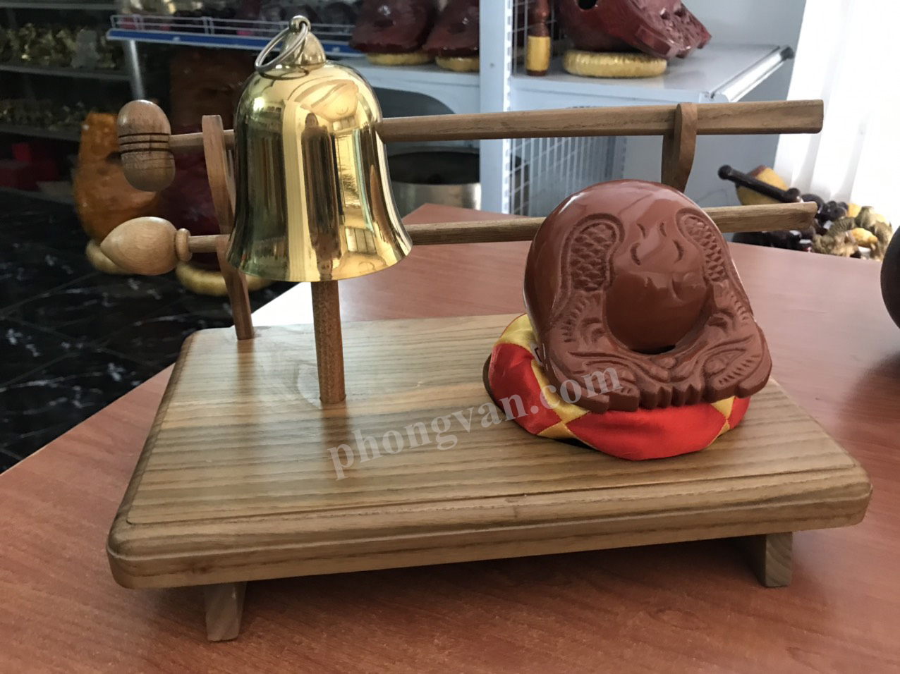 Bộ pháp khí địa chung được kết hợp từ một chuông đồng màu đen, một mõ màu tự nhiên, một bàn gỗ chế tác cẩn thận và hai dùi gỗ để đánh chuông mõ.