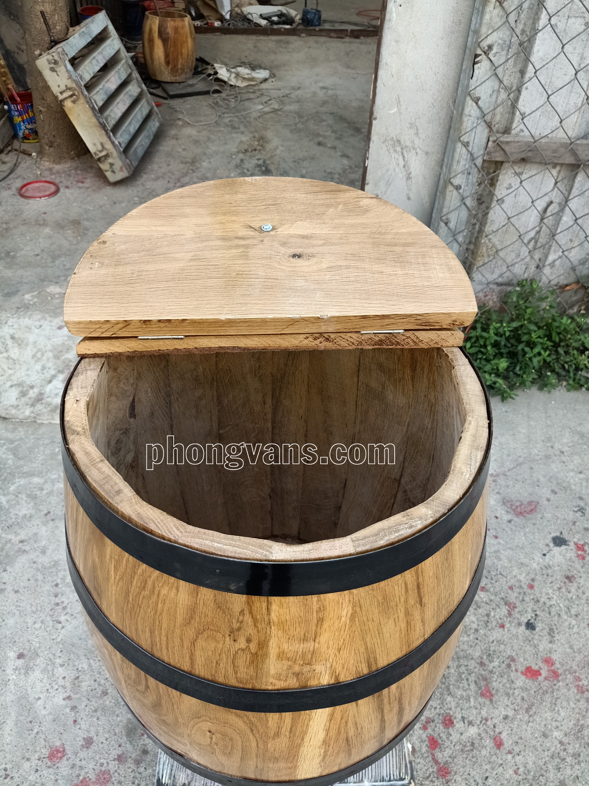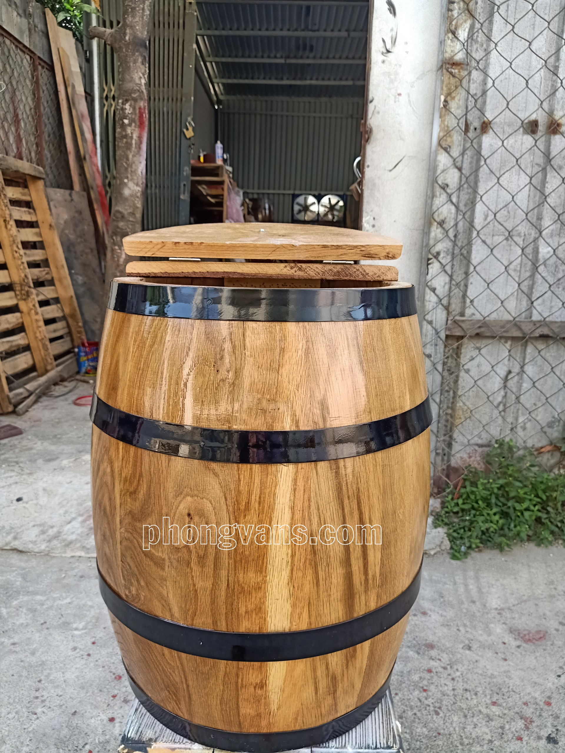- Thiết kế: có nắp đậy, 4 đai thép viền quanh thùng