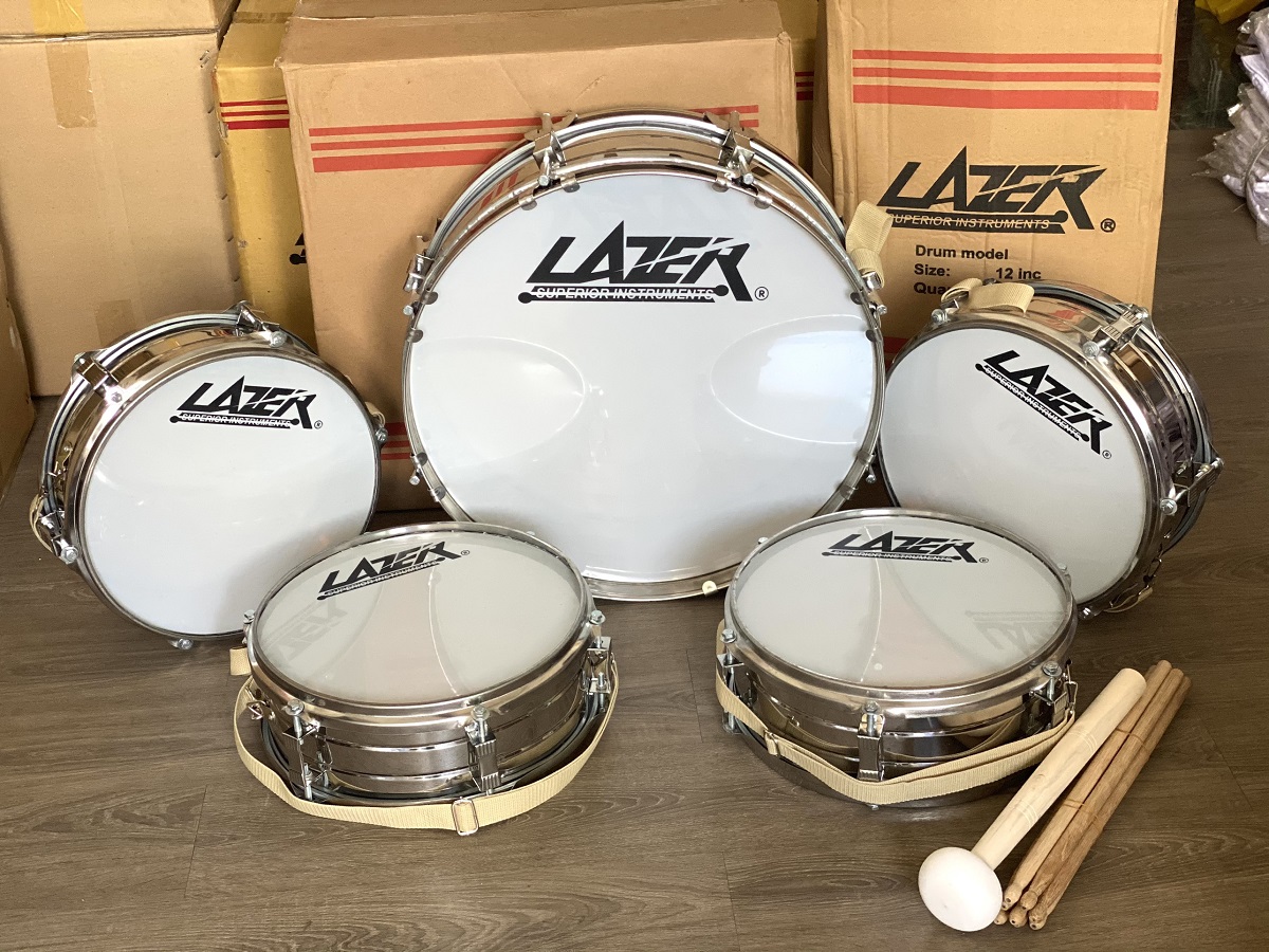 Sản phẩm đến từ thương hiệu Lazer được nhiều người lựa chọn và sử dụng làm thiết bị trong trường học. Vì thế những chiếc trống đội tiểu học  Lazer luôn nhận được thiện cảm từ phía các thầy cô. Bộ sản phẩm bao gồm 5 chiếc trống khác nhau. 5 chiếc trống có hai kích thước khác biệt là trống cái và trống con. Trống cái bao gồm 1 chiếc; có kích thước lớn nhất là 47.5 x 18cm. 4 chiếc trống còn lại có cùng 1 kích cỡ gọi là trống con có kích thước 31 x 13cm