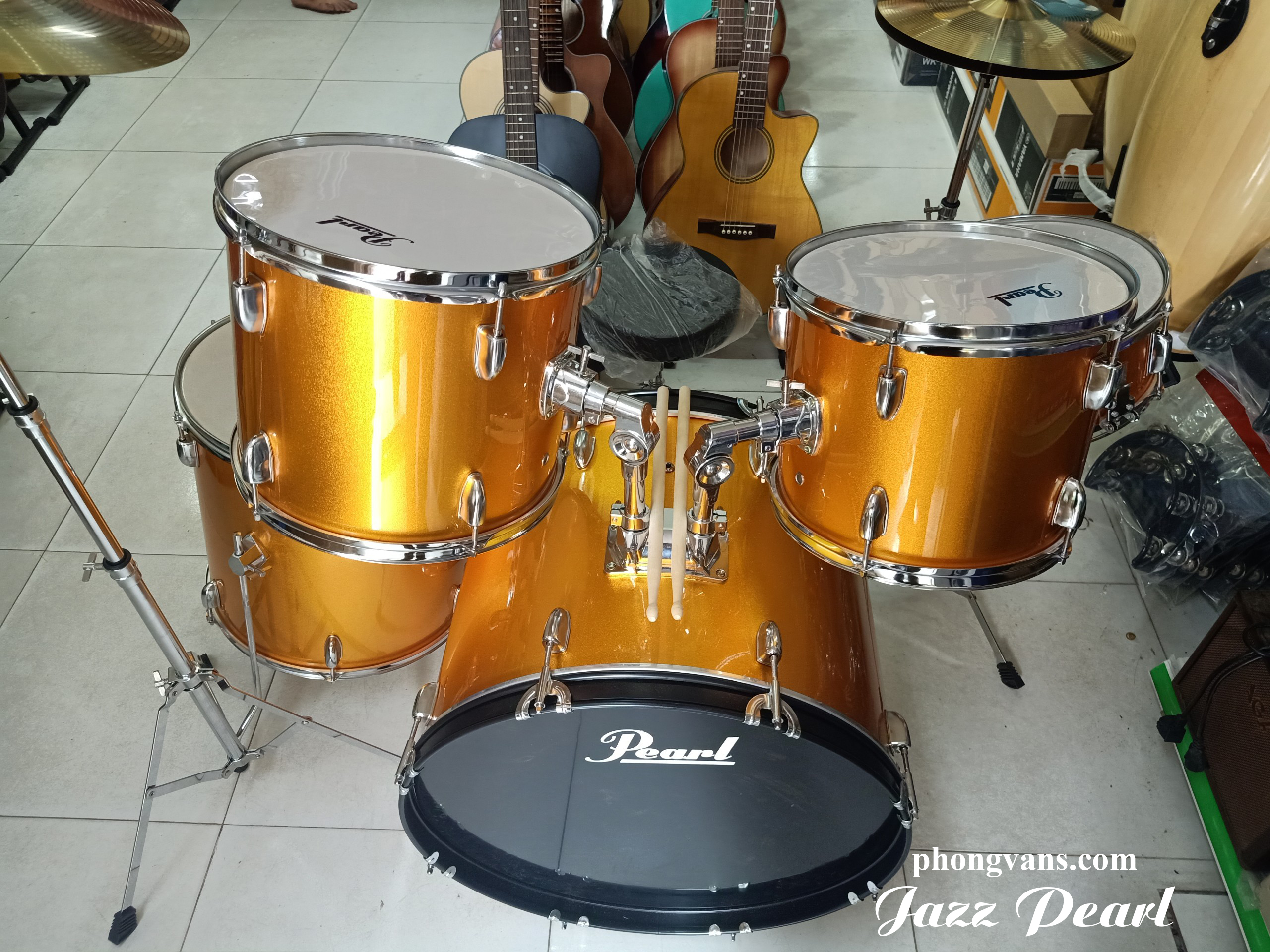 Nhạc cụ Phong Vân chuyên nhập khẩu và cung cấp sỉ lẻ các loại trống jazz của tất cả các hãng khác nhau với giá cạnh tranh. Nay Phong Vân giới thiệu với quý khách mẫu trống nhạc jazz Pearl màu vàng.